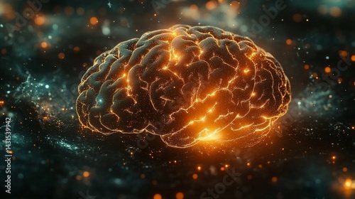 © lona, Fototapeta premium A vibrant, glowing brain in a cosmic nebula