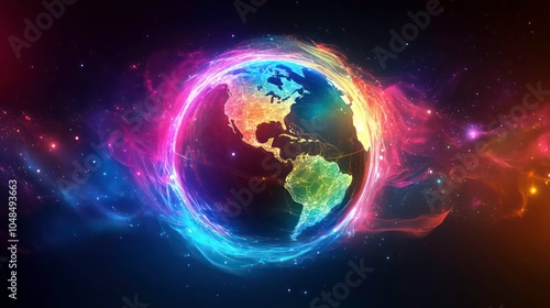 Fototapeta premium A vibrant, glowing Earth with swirling nebulae and stars in the background.