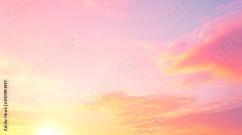 Obraz premium A vibrant, glowing sunset background with a large, clear sky for text