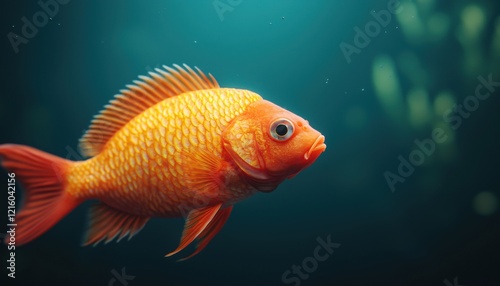Naklejka premium A vibrant goldfish swims gracefully in clear water, showcasing its bright...