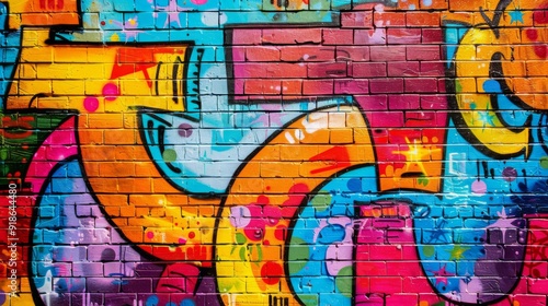 © buraratn, Fototapeta premium A vibrant graffiti wall background with colorful street art and bold patterns, adding urban edge and creativity