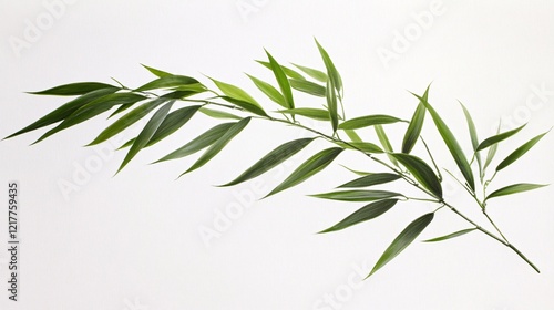 Fototapeta premium A vibrant green bamboo leaf against a clean white background, showcasing its...