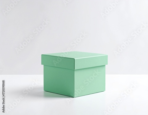 © bestimagestock, Fototapeta premium A vibrant green box with a slightly ajar lid, revealing a glimpse of its interior. The box's smooth surface reflects light, adding depth to its color.