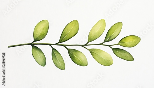 Naklejka premium A vibrant green branch with leaves displayed against a clean white...