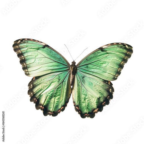 Obraz premium A vibrant green butterfly with intricate details, isolated on a solid...