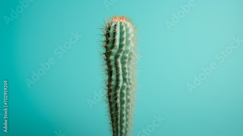 © cac_tus, Naklejka premium A Vibrant Green Cactus Plant Standing Against a Blue Background