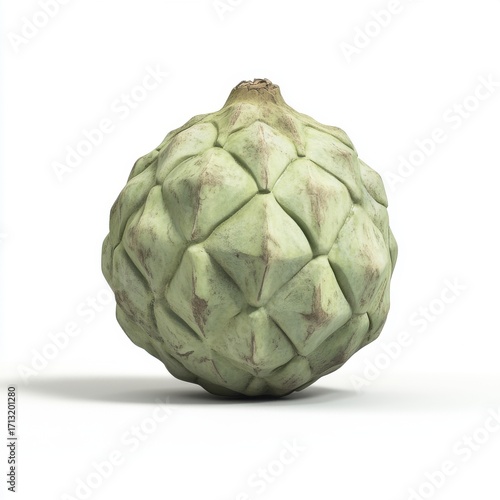 Fototapeta premium A vibrant, green cherimoya fruit displayed against a clean white background,...
