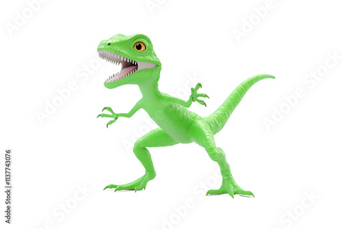 Obraz premium A vibrant green dinosaur figure with an open mouth, posed dynamically as if...