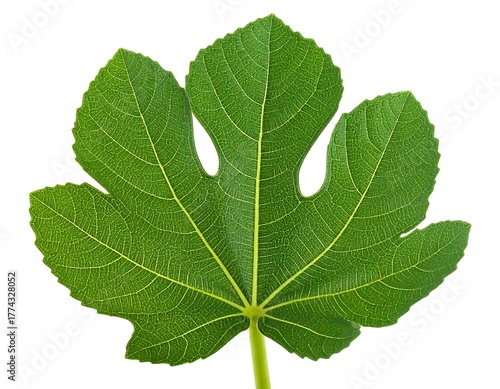 © Ginto, Fototapeta premium A vibrant green fig leaf is centrally isolated against a plain white background
