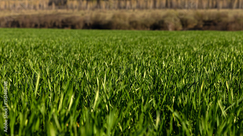 © Victor Kaprov, Obraz premium A Vibrant Green Grass Landscape Captured Beautifully Under a Clear Blue Sky Above
