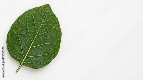 Obraz premium A vibrant green leaf with intricate vein patterns, set against a plain...
