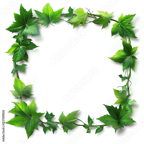© Alex, Naklejka premium A vibrant green leafy frame, rich in detail and texture, perfect for showcasing any content. Ideal for environmental themes, nature projects, or decorative purposes.