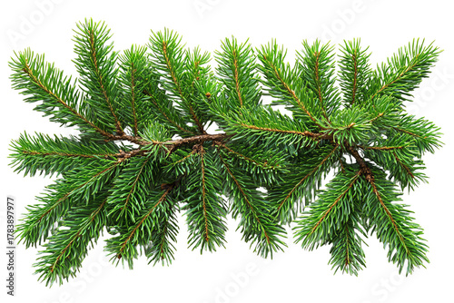 Obraz premium A vibrant green pine branch with lush needles against a white isolated...