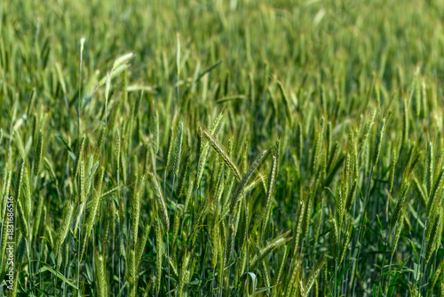 Obraz premium A vibrant green wheat field fully prepared for the upcoming harvest season in...