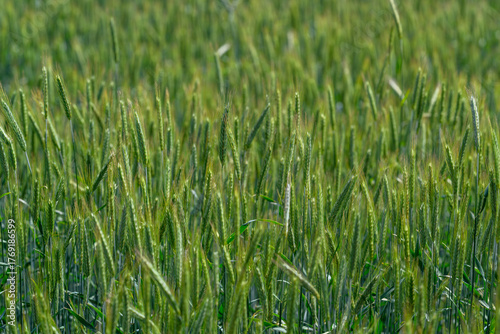 Obraz premium A Vibrant Green Wheat Field in its Full Growth Stage, Flourishing Under the...
