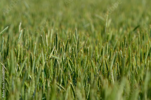 Obraz premium A Vibrant Green Wheat Field, Ready and Waiting for Harvesting, Evokes Natures...
