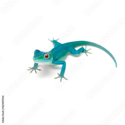 © shahryar, Naklejka premium A vibrant greenish blue lizard with intricate scales and delicate features is centered on a pristine white background