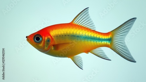 Fototapeta premium A vibrant high fin tetra with a bright orange and yellow body, and a shimmering blue stripe along its side.