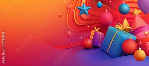 Fototapeta premium A vibrant holiday sale banner with festive decorations and space for a...