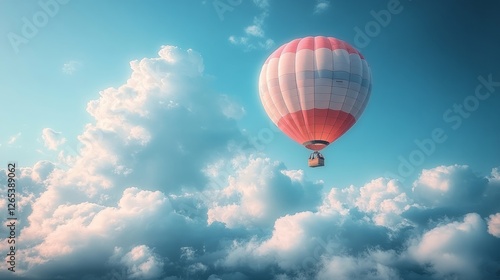 Naklejka premium A vibrant hot air balloon drifts gently among fluffy white clouds