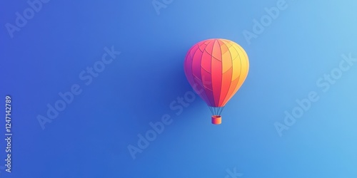 © NpicArt, Obraz premium A vibrant hot air balloon floats in a clear blue sky