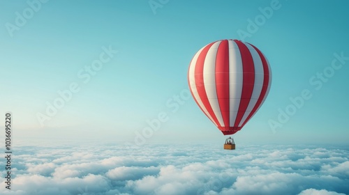 Fototapeta premium A vibrant hot air balloon floats majestically above fluffy clouds against a...