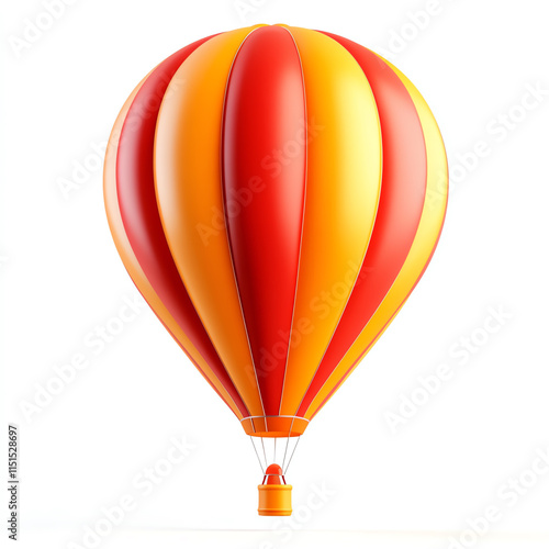 Naklejka premium A vibrant hot air balloon with red and orange stripes, isolated on a white...