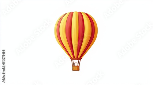 © Ginta, Naklejka premium A vibrant hot air balloon with red and yellow stripes, floating against a white background.