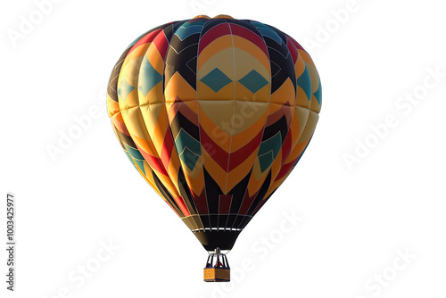 Fototapeta premium A vibrant hot air balloon with striking geometric patterns floats against a...