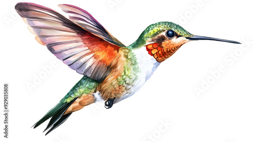 © khunnapat, Obraz premium A vibrant hummingbird in mid-flight, showcasing its intricate feathers and delicate beak.