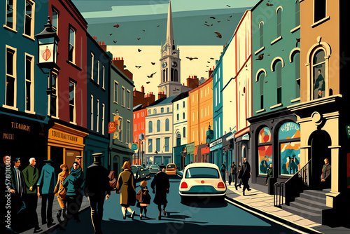 Fototapeta premium A vibrant illustration capturing the unique history and culture of Dublin, featuring iconic landmarks and bustling streets. generative ai
