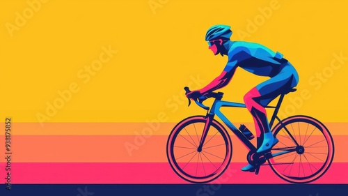 Fototapeta premium A vibrant illustration of a cyclist riding against a colorful sunset backdrop, showcasing energy and movement.