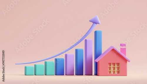 Fototapeta premium A vibrant illustration of a home with increasing bar charts and an upward...