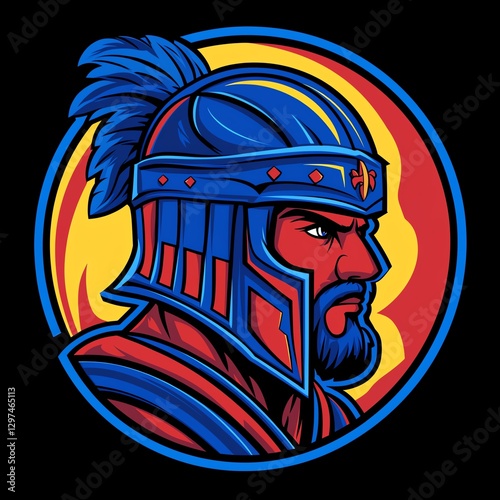 Naklejka premium A vibrant illustration of a warrior in a helmet, symbolizing strength and...