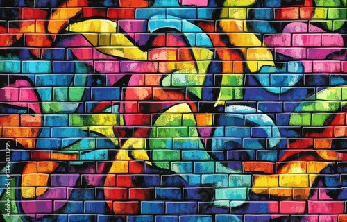 Fototapeta premium A vibrant illustration of an abstract brick wall with colorful graffiti...