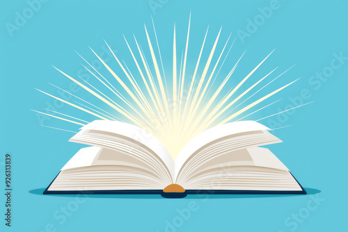 Obraz premium A vibrant illustration of an open book emitting radiant light, symbolizing...