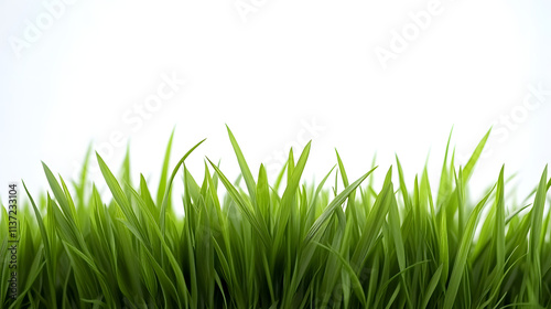 Fototapeta premium A vibrant image of fresh green grass blades set against a crisp, white...