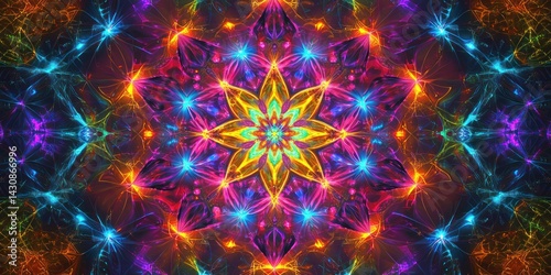 © Soklin, Fototapeta premium A vibrant, kaleidoscopic pattern with endless loops and bright, glowing accents
