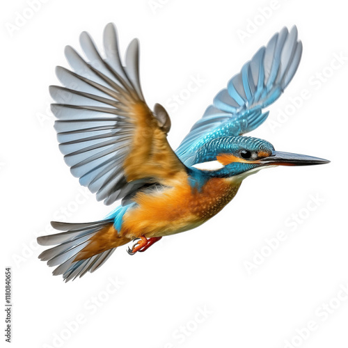 © kageyama, Obraz premium a vibrant kingfisher in mid-flight. showcasing its striking blue and orange plumage against a clean white background the bird's wings are spread wide. emphasizing its grace and agility. making it a ca