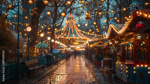 © Wararat, Obraz premium A vibrant local carnival with colorful lights and festive decorations.