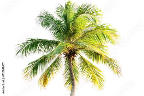 Fototapeta premium A vibrant, lush green coconut palm tree, isolated on a transparent background background removed