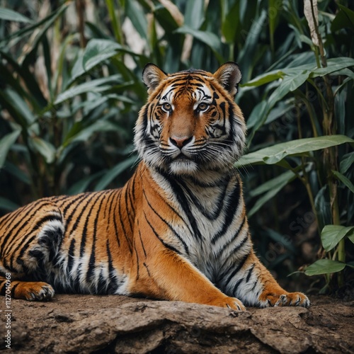 Naklejka premium "A vibrant miniature tiger with radiant pin-fur and perfect black stripes,...