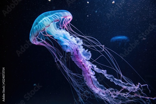 Naklejka premium A vibrant mix of blue and purple shapes suspended in mid-air with an infinite...