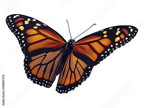© SolaruS, Fototapeta premium A vibrant monarch butterfly delicately perched on a cluster of lavender blossoms.