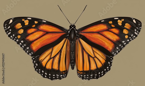 Fototapeta premium A vibrant monarch butterfly with distinct orange and black wings, showcasing...