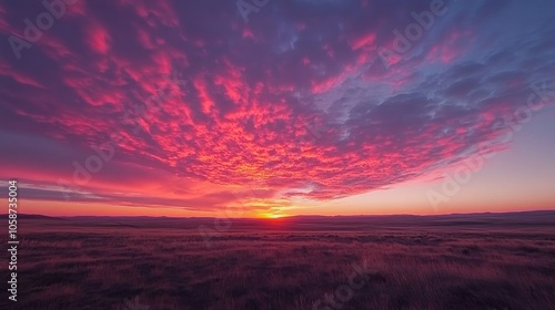 © CreativeBro, Obraz premium A vibrant morning sky filled with red tones showcases a stunning sunrise and wispy clouds at daybreak