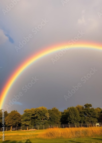 Naklejka premium A vibrant multicolored rainbow with a heart shape in the center symbolizing...