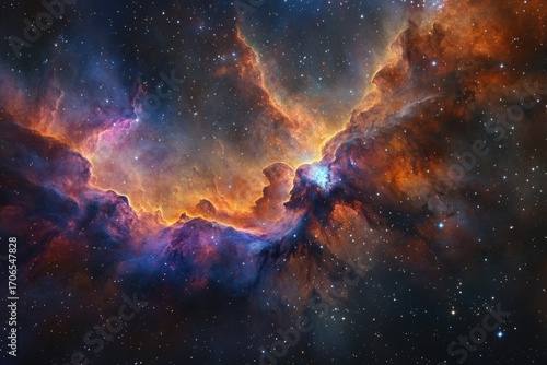 Fototapeta premium A vibrant nebula showcasing cosmic dust and gas clouds illuminated by stars,...
