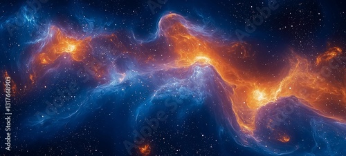 © Cozyday, Obraz premium A vibrant nebula swirling with gradient colors, illuminated by distant starlight and sparkling cosmic dust.