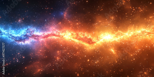© Vertigo Images, Obraz premium A vibrant nebula with streaks of blue and orange light.